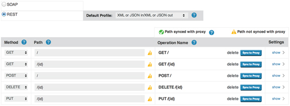 Describing the API interface is pretty easy; you describe API operations as a combination of http verb and resource location (uri), optionally choosing additional settings for media types. The interface definition for our sample customer API looks like this: