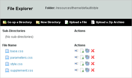 When you upload a new custom.less file in the Custom Styles section, the /resources/theme/default/style directory is automatically created and includes the site default style sheets. Some points to note: