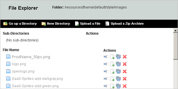 Figure. Upload sprite files to \images folder via Administration > Config > Resources (Resources > File Manager)